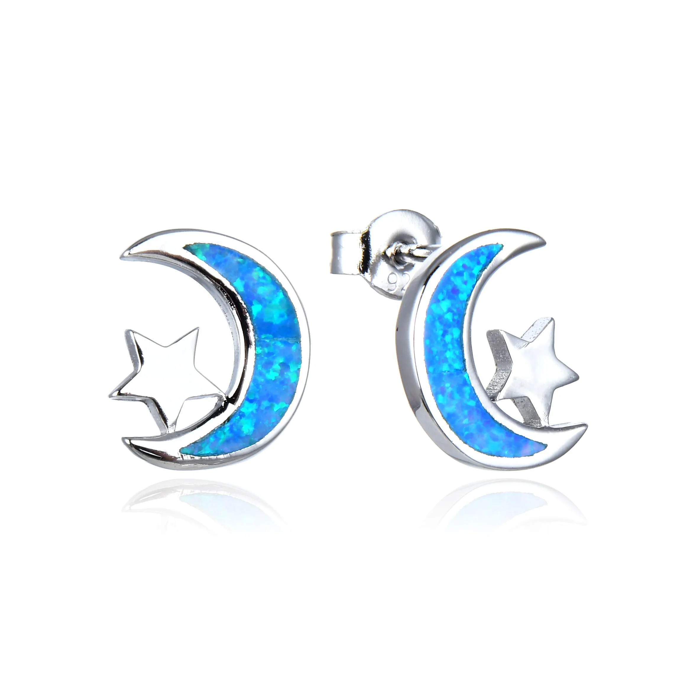 925 Sterling Silver Lab Grown INLAID dangling wave blue opal earrings-22200-k5
